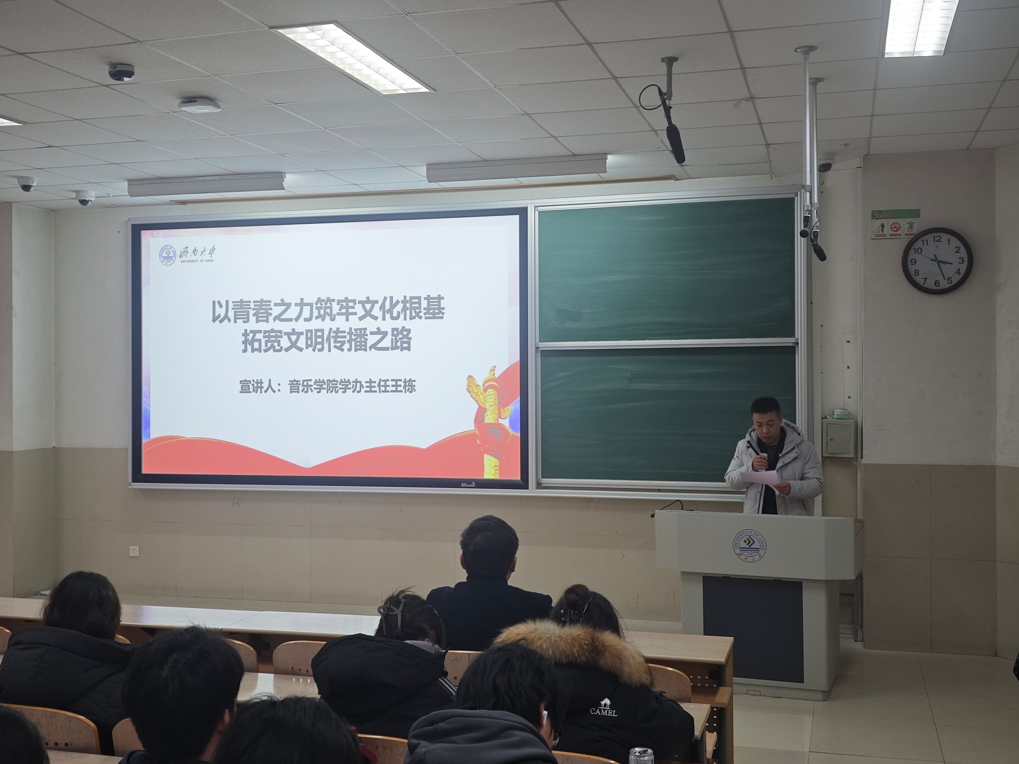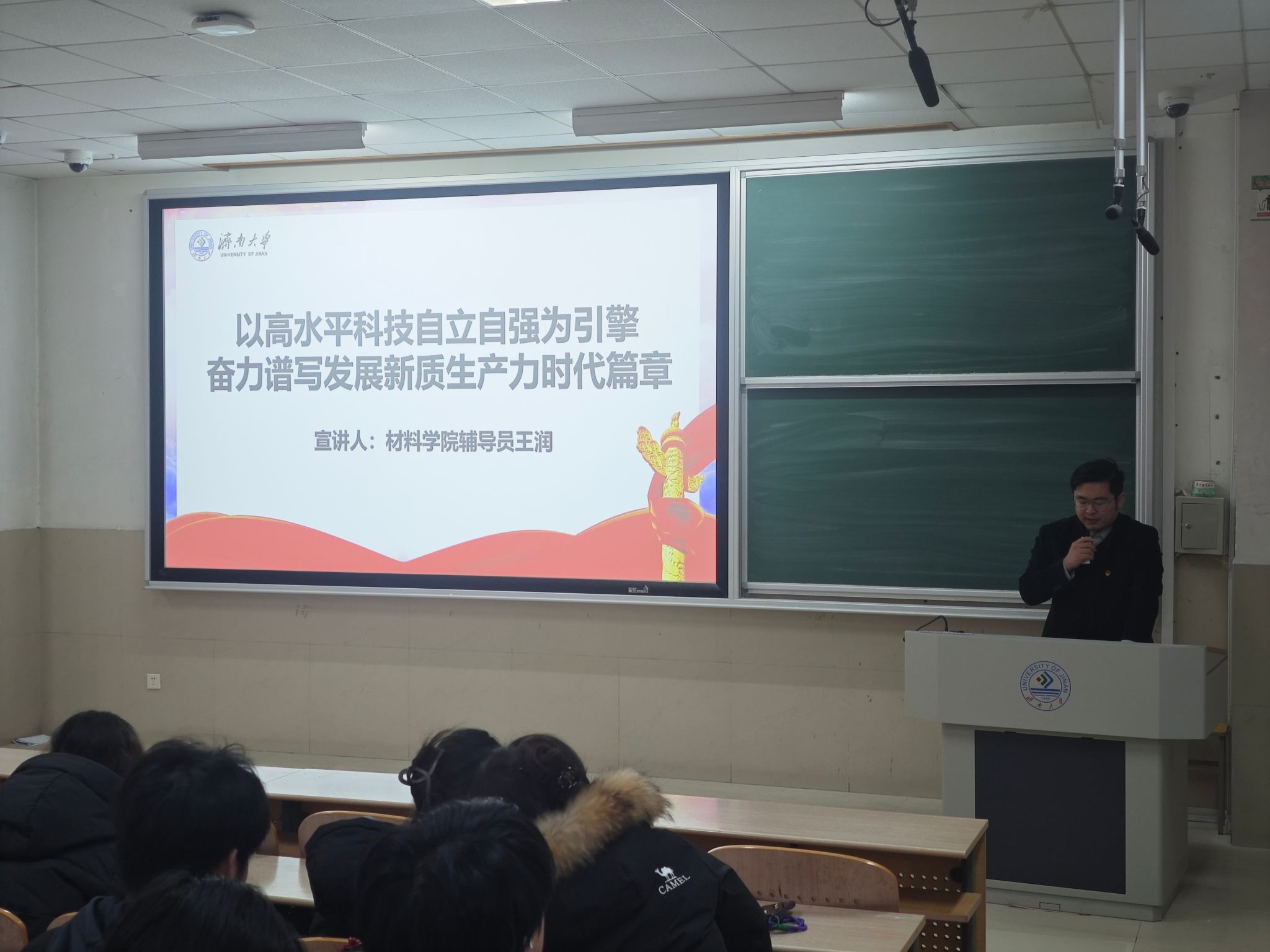 本次宣讲活动内容丰富深刻、紧扣时代脉搏。音乐学院学办主任王栋以“以青春之力筑牢文化根基拓宽文明传播之路”为题,从文化传承与创新角度,阐述青年在守护中华优秀传统文化、推动文明交流互鉴中的责任;材料学院辅导员王润围绕“以高水平科技自立自强为引擎奋力谱写发展新质生产力时代篇章”展开分享,结合学科特色剖析科技自立自强对发展新质生产力的重要意义,鼓励青年投身科研创新;成人直播
