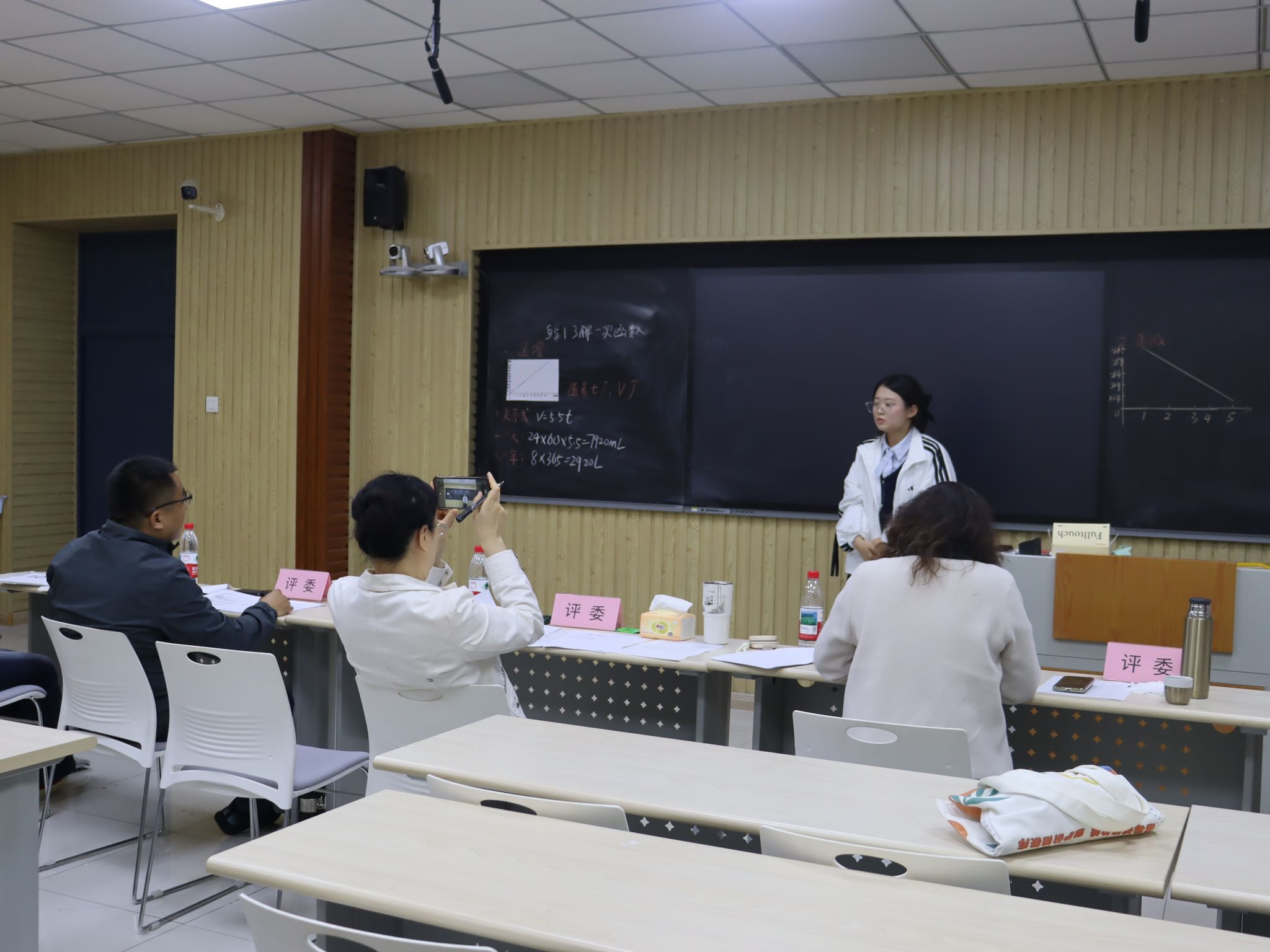 院赛于3月22日下午在第一教学楼顺利举办。比赛紧扣师范生职业发展核心需求,结合数学学科特点,设置小学、初中、高中3个学段,涵盖模拟授课、板书设计等关键环节,全方位考查选手的教学设计、课堂驾驭、语言表达、书写功底与临场应变能力。赛前,参赛选手潜心打磨教案,反复推敲授课细节,精炼板书布局,将对数学教学的热忱与专业积累融入每一处准备,展现出师范生勤勉务实的良好风貌。比赛现场氛围紧张而热烈,参赛选手们立足新课标理念,结合数学学科的逻辑严谨性与趣味性,将精巧的教学设计与新颖的教学方法融入课堂,把扎实的数学专业基础和良好的教学素养展现得淋漓尽致,为校级选拔奠定坚实基础。