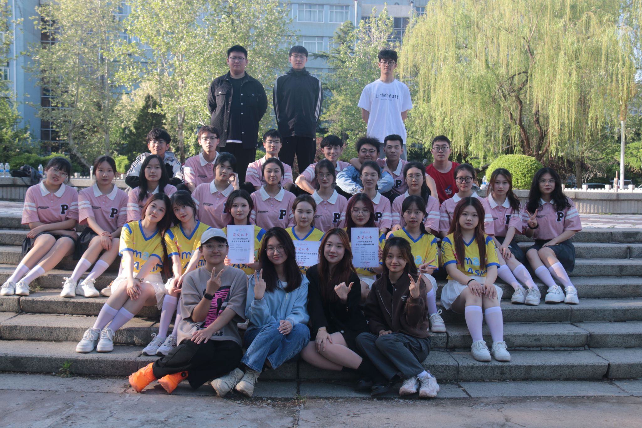 健身操代表队参加了2024年济南大学学生活力健身操比赛,他们凭借出色的编排和卓越的表现荣获团体操规定动作二等奖和自选动作二等奖。