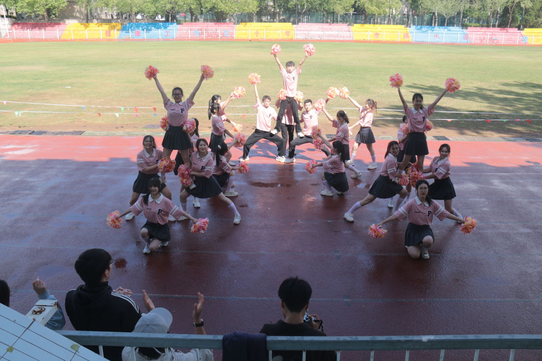 学子们优异的团队协作能力。比赛前期,为了在比赛中取得好成绩,队员们付出了极大的努力,他们充分利用课余时间进行训练,从基本动作到队形编排,从技巧提升到默契配合,每一个细节都精心打磨。比赛当天,北苑操场气氛热烈,参赛选手们个个风采独具,舞姿娴熟,他们配合着动感的音乐展现其独特的舞蹈编排和风格。在团体操规定动作中,成人直播