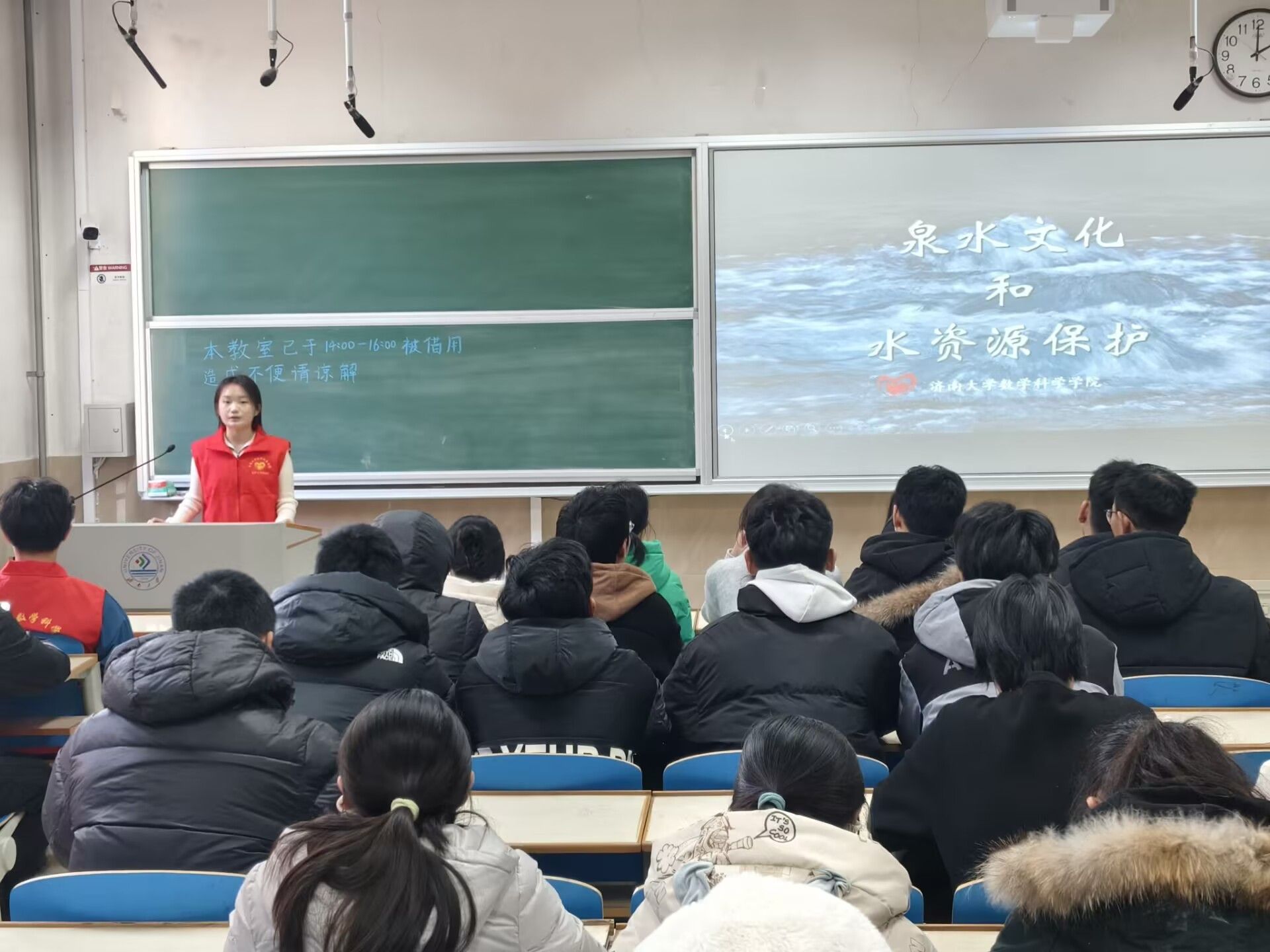 本次活动由李小格和赵英奇分别对水资源保护和垃圾分类的问题进行科学细致地讲解。活动伊始,李小格先用一段视频介绍济南泉水的起源,极大地激发了同学们对泉水保护的热情。然后通过一个小游戏介绍了济南泉水形成的特殊地理原因,让同学们更加清晰地认识了泉水文化,调动了他们对泉水保护的积极性。随后,赵英奇通过一组数据科学直观地展现出垃圾分类的必要性,再通过一场拼图比赛进一步深化同学们对垃圾分类的了解和认识,让他们深刻意识到环境保护的责任和义务。