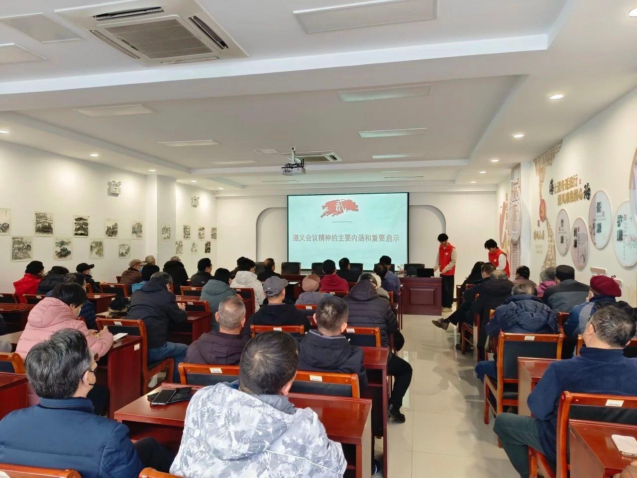 宣讲会上,宣讲团成员首先从遵义会议的历史背景、基本过程和重大意义三个方面,具体介绍遵义会议的详细内容,指出遵义会议不仅确立了毛泽东同志在党中央和红军的领导地位,更是中国共产党历史上一个生死攸关的转折点,挽救了党、挽救了红军、挽救了中国革命。此外,宣讲团成员结合党的百年辉煌历程,深刻阐述遵义会议精神的主要内涵,即坚定信念、坚持真理、独立自主、团结统一。他们强调,这些精神特质,不仅是革命时期的重要法宝,更是新时代我们应对各种挑战、实现民族复兴的强大精神动力。宣讲过程中,宣讲团成员还通过视频让居民们更加直观地感受到遵义会议精神的伟大和革命先辈的英勇无畏。活动最后,居民们纷纷发言,分享自己对遵义会议精神的理解和感悟,现场气氛热烈而融洽。