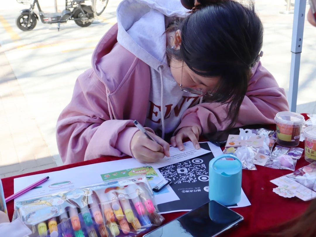 活动通过明信片绘制、投票助力等方式为山区的孩子们送去爱和温暖,让温暖与希望在校园中传递。 活动现场,志愿者们将明信片发放到同学们手中,并耐心讲解活动意义。同学们积极响应,纷纷拿起画笔,通过绘画、贴纸或写寄语的方式,向山区儿童传递真挚祝福。明信片中饱含着对山区孩子快乐成长的期盼,寄语中充满对小朋友的鼓励与支持,每一笔、每一字都凝聚着期望与爱意。同时,志愿者帮助同学们将承载满满祝福的明信片拍摄后上传至社交媒体平台,还为参与者准备了小游戏和礼品,让同学们在公益之余收获更多乐趣。