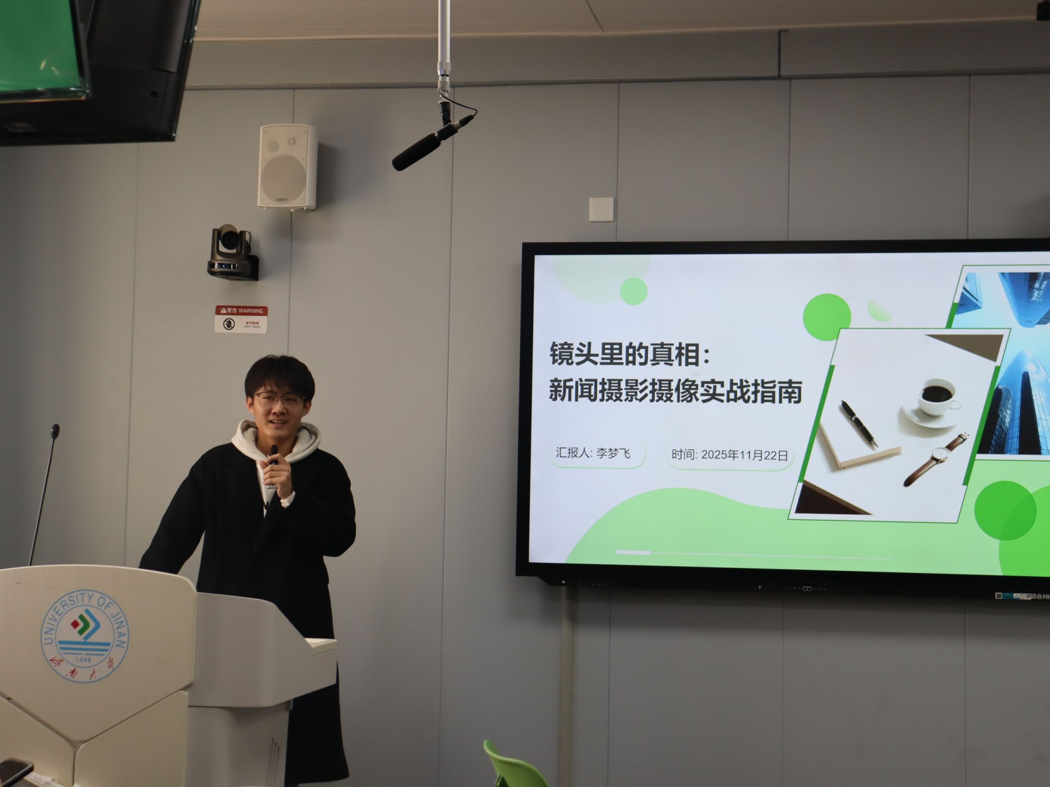 随后,李梦飞结合自身实战经验,开展新闻摄影摄像专题指导,从设备使用、场景拍摄技巧到素材后期处理,全方位分享宣传影像采集的实用方法。李雨晴聚焦新闻稿措辞规范,通过案例分析的方式,详细讲解常见措辞谬误及修正技巧,帮助成员提升文字表达的准确性与专业性。