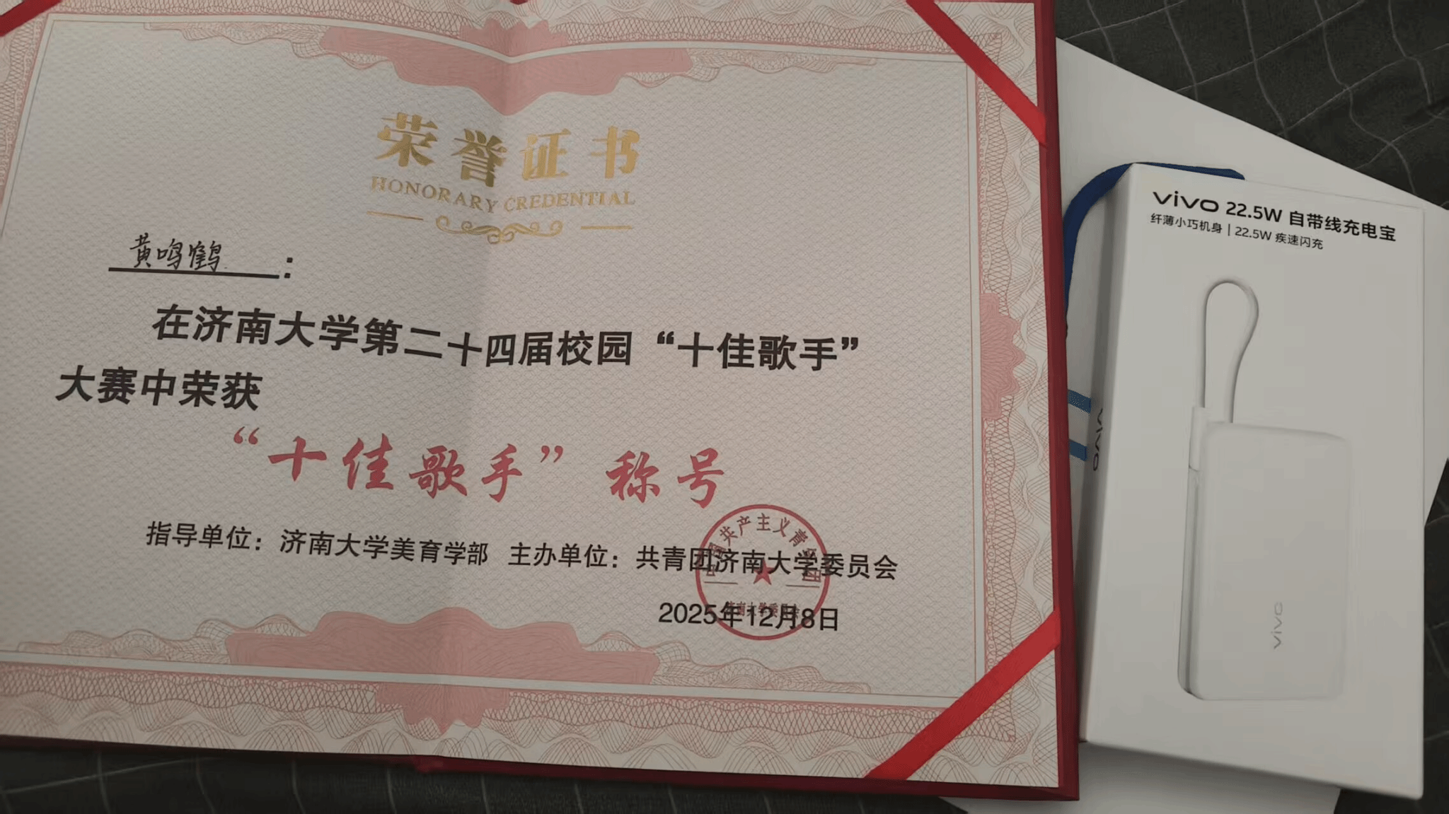 济南大学“十佳歌手”大赛作为校园美育实践的重要平台,始终践行“以美育人、以美化人、以美润心”的育人使命,为学子搭建起展示自我、绽放才华的青春舞台。黄鸣鹤的出色表现,不仅为成人直播