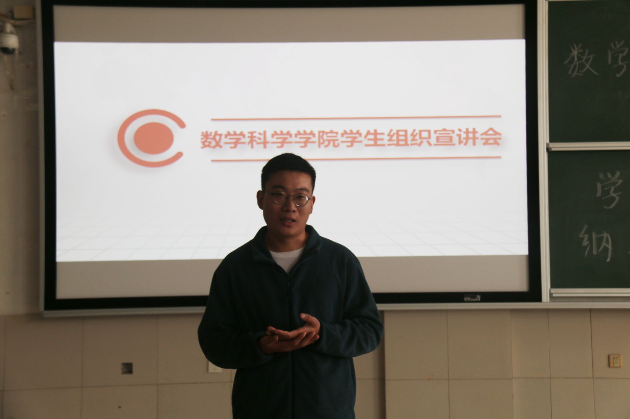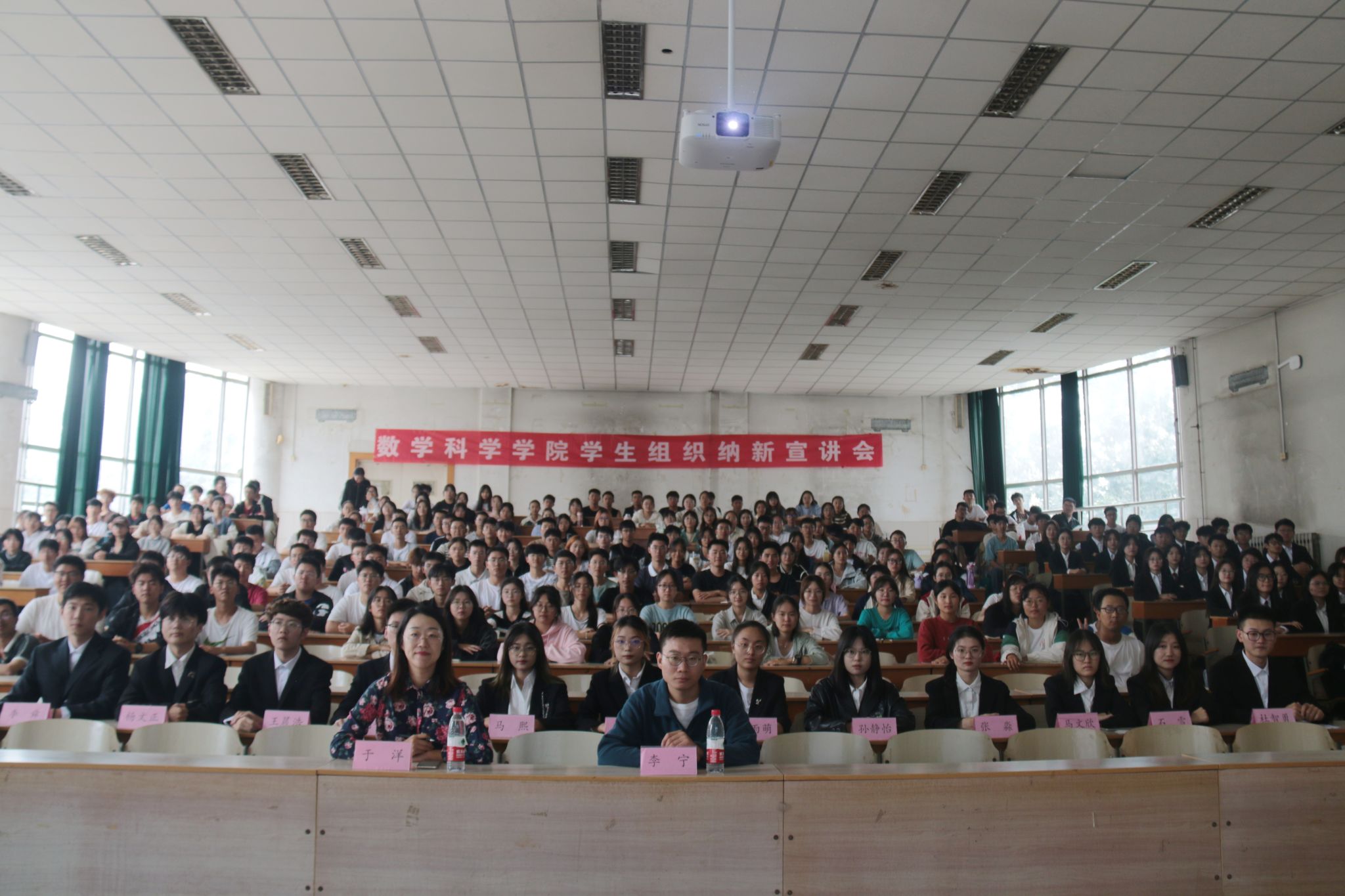 学生组织纳新宣讲会,团委书记于洋、新生辅导员李宁及学生组织成员与全体2023级新生共同参与了此次会议。