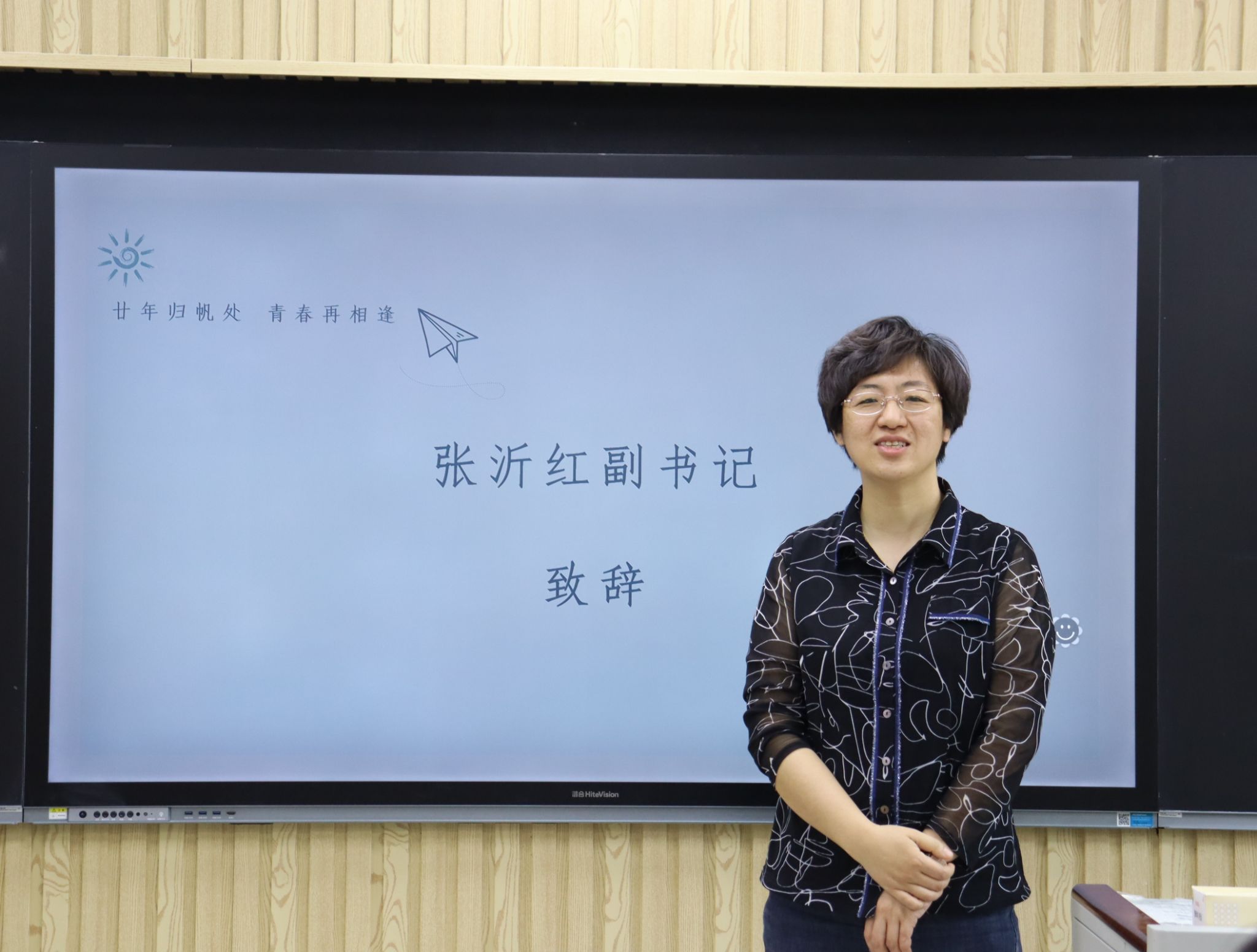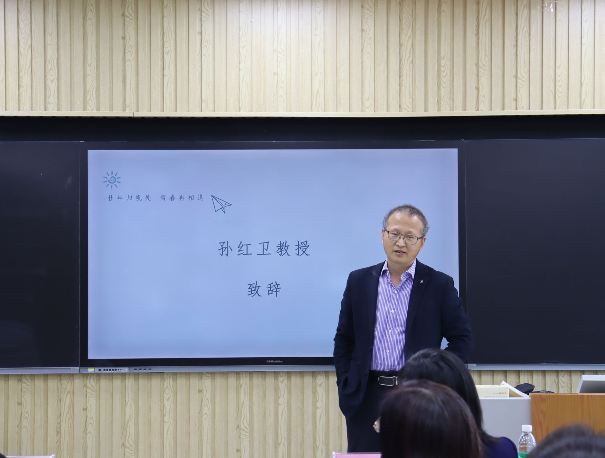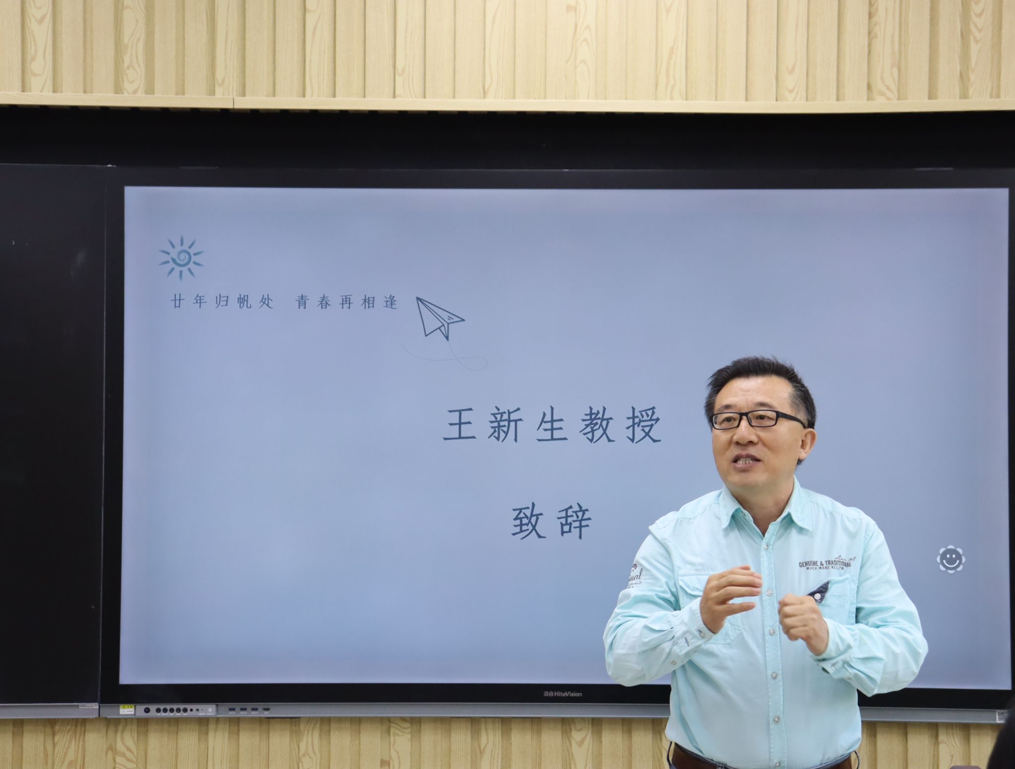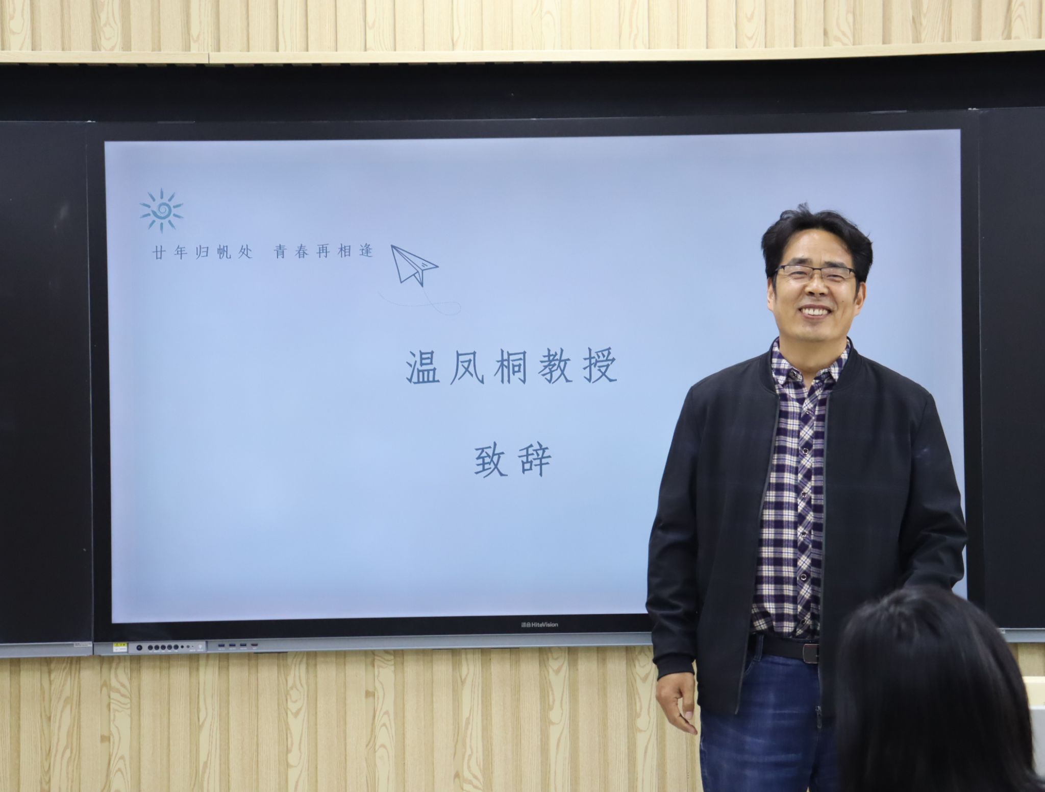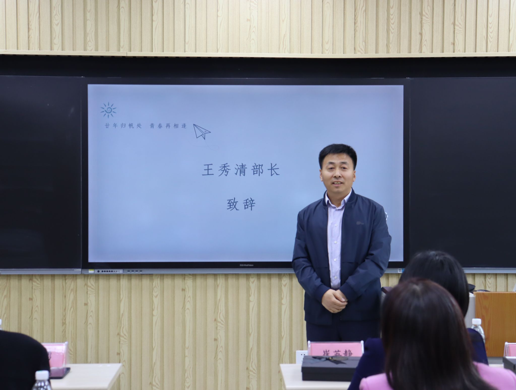 随后,在第七教学楼智慧教室举行了师生座谈会,学院领导、老师与校友们欢聚一堂,共叙旧情。学院党委书记崔英静代表学院对校友们返校表示热烈欢迎,介绍了学院近年来的发展建设情况,并感谢校友们长期以来对母校的关心和支持,真诚希望各界校友持续关注学院动态,助力学院高质量发展。与会领导、老师逐一为校友们送上衷心的祝福。校友们深情回顾师生间的深厚情谊和同窗间的难忘岁月,感恩老师们的辛勤教导和母校的精心培养。座谈会欢声笑语不断,热烈的掌声经久不息,处处涌动着浓浓的师生情谊和同窗之谊。