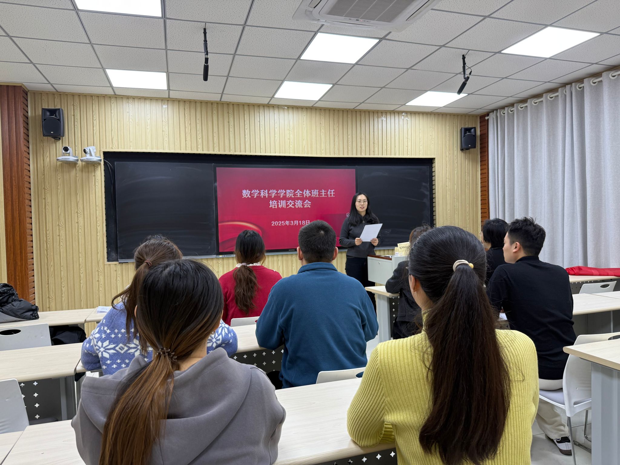 在学院智慧教室召开全体班主任培训交流会,旨在进一步强化班主任在学生教育管理与育人工作中的关键作用,提升班主任队伍履职能力与专业素养。学院党委副书记、副院长张沂红主持会议。